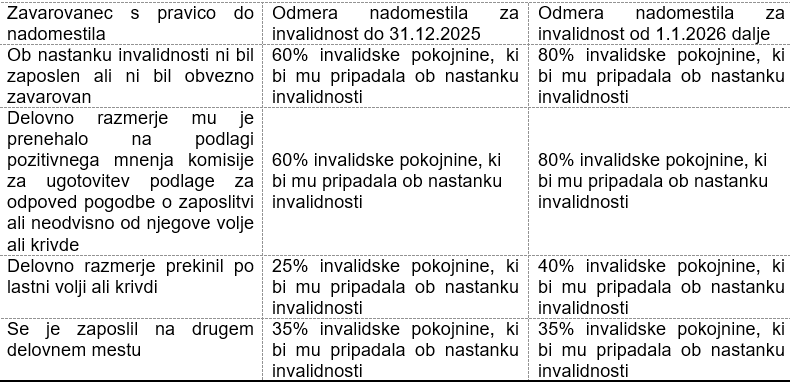 Poleg tega se bo v letu 2026 zvišala odmera nekaterih nadomestil iz invalidskega zavarovanja: